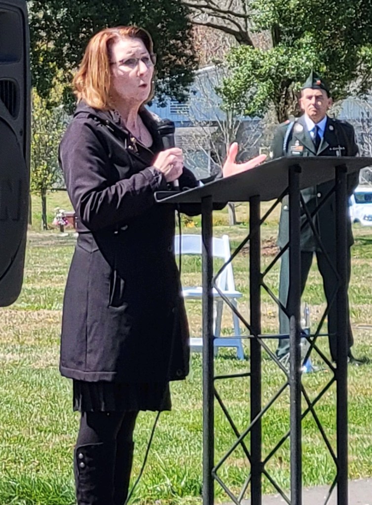 Photo: Dr. Bruner-Tran speaking at the Orange Heart Memorial in Springfield, Tennessee on March 29, 2023. Photo by Paula Austin.